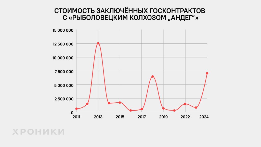 Еще одна компания из НАО, которая переводила деньги «Единой России» — «Рыболовецкий колхоз „Андег“», которым много лет руководит Алексей Дитятев. Его семья контролирует всё предприятие. Также Дитятев возглавляет «Ненецкий рыбакколхозсоюз». Ранее «Хроники.Медиа» включали Дитятева в число «рыбных хозяев» СЗФО.