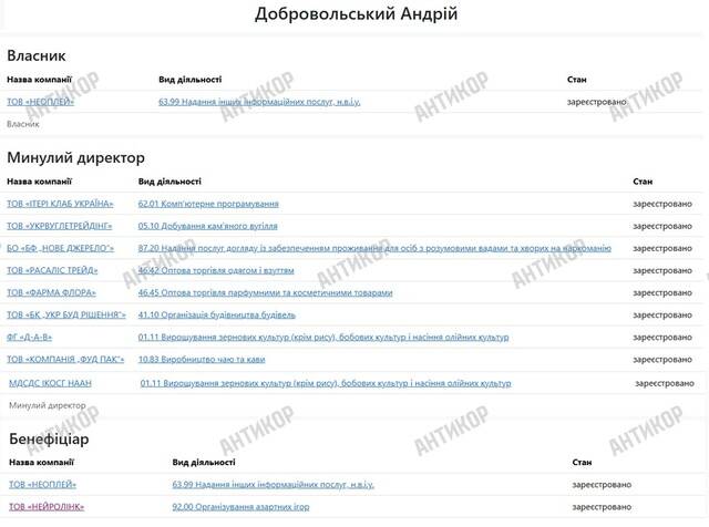 Согласно данным Оpendatabot, ФОП Зборовский оформлен лишь в 2020 году. На нём — «деятельность в сфере программирования». Ранее он не владел никакими значимыми компаниями, не фигурировал в крупных сделках, и уж тем более — не инвестировал миллионы в гемблинг.
