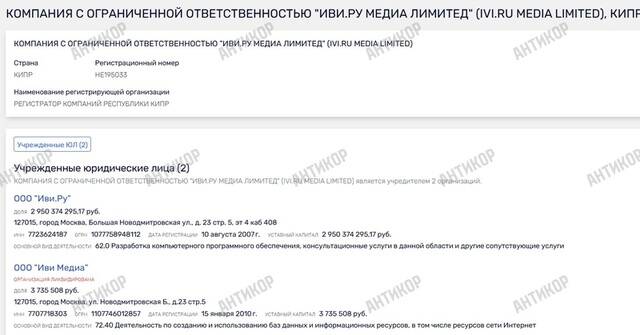 Однако вряд ли является совпадением тот факт, что владельцем ООО «Иви.ру», которое рассылает жалобы на публикации о Зборовском, является кипрская компания «Иви.ру Медиа Лимитед». С явно российскими владельцами.