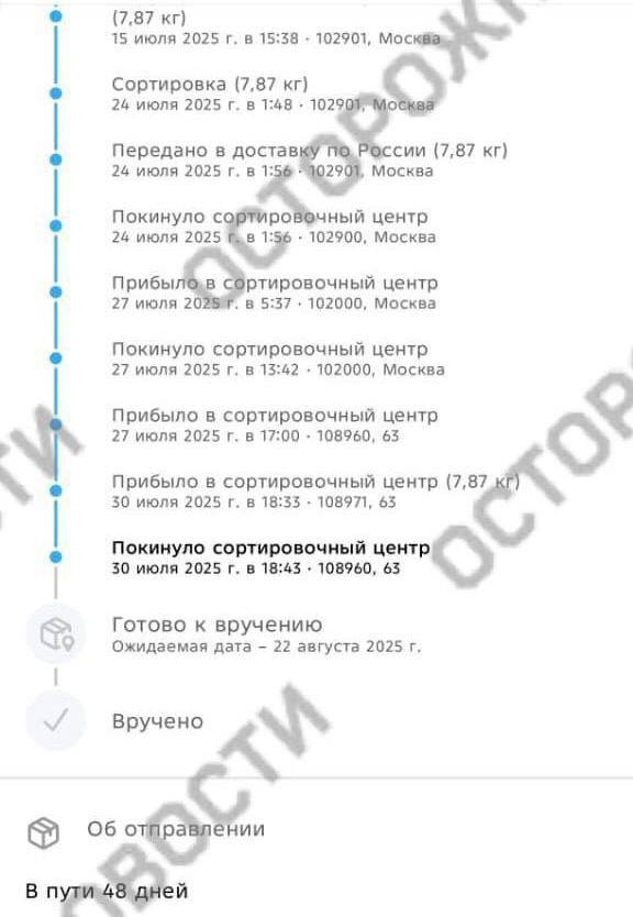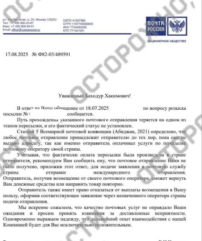 Бахадур Х., в начале июля он заказал из Германии одежду на 60 тысяч рублей и оформил доставку «Почтой России». 30 июля пришло сообщение, что посылка покинула почтовое отделение во Внуково, где находится сортировочный центр. На этом оповещения о статусе доставки прекратились. Мужчина обратился в «Почту России», ему сообщили, что посылка утеряна. В сортировочном центре во Внуково, по словам Бахадура, рассказали, что посылки там пропадают часто. В интернете у этого почтового отделения минимальный рейтинг и сотни плохих отзывов. Люди жалуются на кражи посылок, медленную доставку и вскрытие бандеролей.