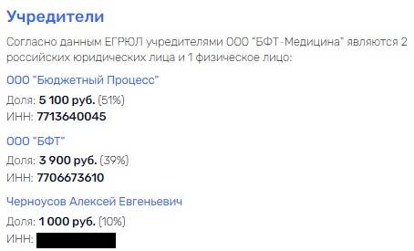 Отдельное внимание привлекает еще одна структура, единственная ликвидированная из учрежденных Черноусовым - ООО "БФТ-Медицина". Она была упразднена в 2015 году, т.е. уже тогда, когда деньги на создание системы, по версии следствия, уже были "освоены".