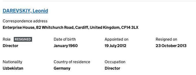 При этом Даревский числился в руководстве ещё целой группы немецких (и не только немецких) компаний. Из открытых источников известно, что он получал письма на адрес в Великобритании, имел Nationality - Uzbekistan и статус резидента Германии. Очень удобно, чтобы обрубать все концы.
