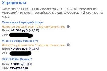 Так, а всё же, откуда взялись 3,4 млрд рублей на покупку активов? Может быть иные активы Пинчевского принесла астрономические прибыли? По данным "Руспрофайл", Пинчевский является участником 13 юрлиц, а стоимость его долей по итогам 2022 года имеет отрицательное значение - 448 млн рублей.
