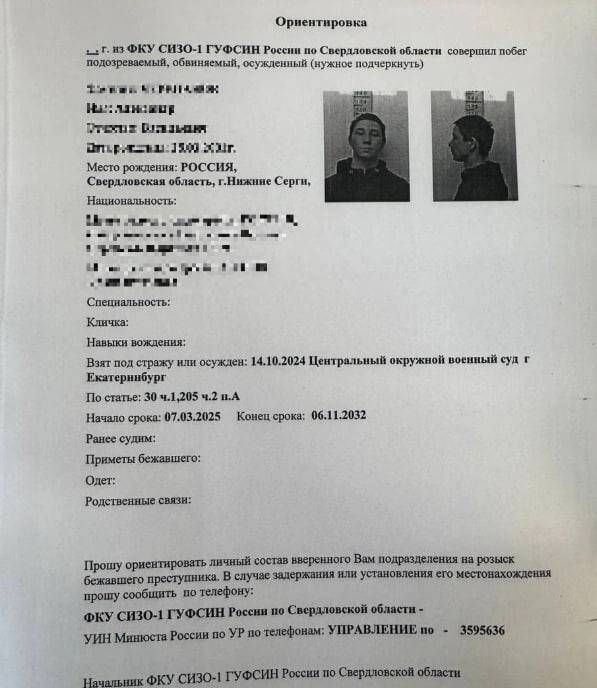 В Екатеринбурге из СИЗО №1 сбежали двое заключённых, ранее осуждённых за поджоги военкоматов