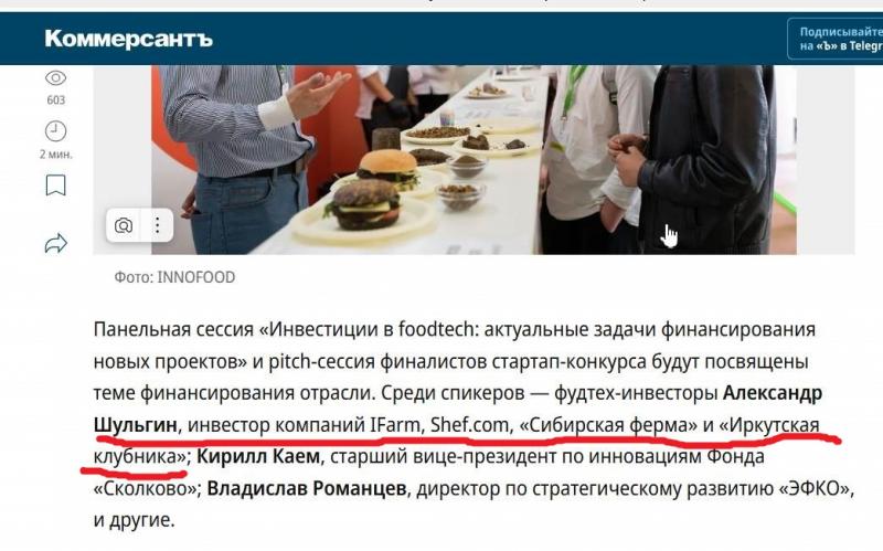 Речь в сообщениях о клубничном стартапе шла именно о «Сибирской ферме» да еще «Иркутской клубнике» (ОГРН 1223800013030). Шульгин везде именуется их «инвестором».