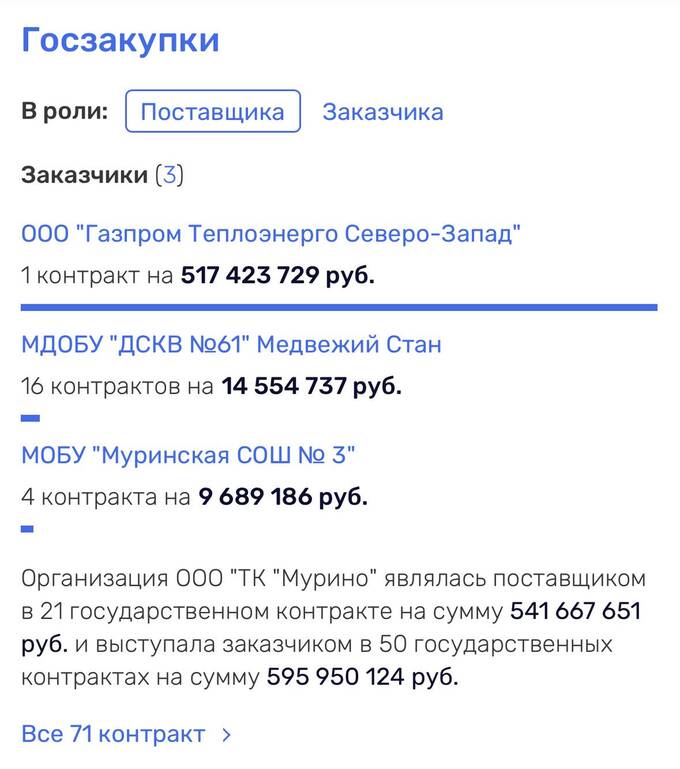 А еще одна фирма Березина, «Топливная компания «Мурино», получила госконтрактов более чем на миллиард: