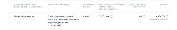 Еще один госконтракт с Амурской областью на маски "Дельрус" заключила почти на пять миллионов рублей. Они продавали упаковку масок, в каждой из которой было 50 штук, за 1490 рублей. Получается, что цена каждой маски – почти 30 рублей.