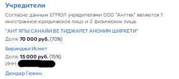 ООО "Анттек" учреждено в 2013 году и на 70% принадлежит турецкой компании "Ант Япы Санайи ве Тиджарет Аноним Ширкети", а также Исмету Биринджи и Гювену Дюндар.