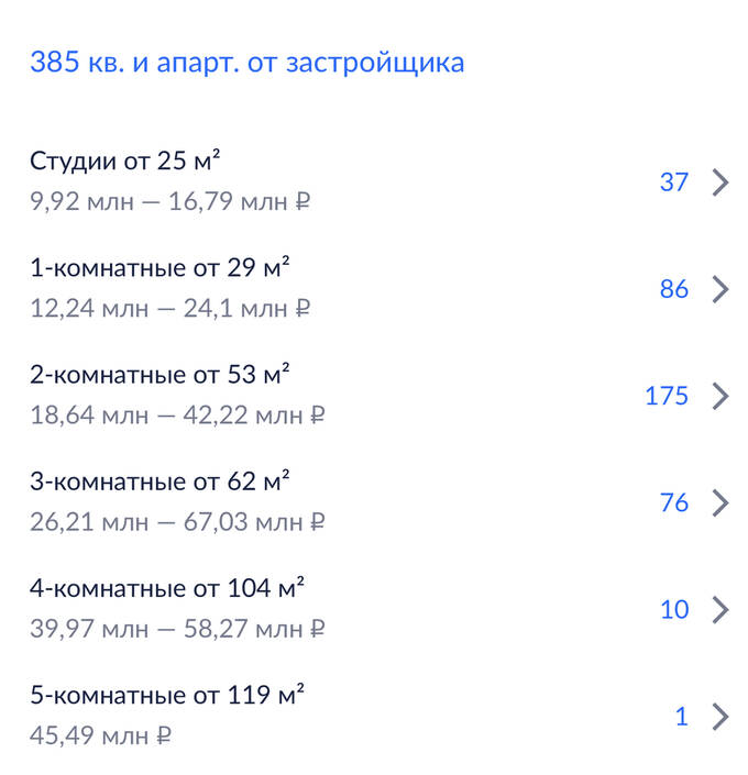 Самая дешевая квартира (если это вообще можно назвать квартирой) площадью всего лишь 25 метров квадратных. Застройщик предлагает купить крошечную недвижимость по цене от 1 миллиона рублей. Реально микроквартира вам обойдется около 1.5 миллиона или же 600 тысяч рублей за метр квадратный. Очень не дешево.