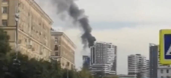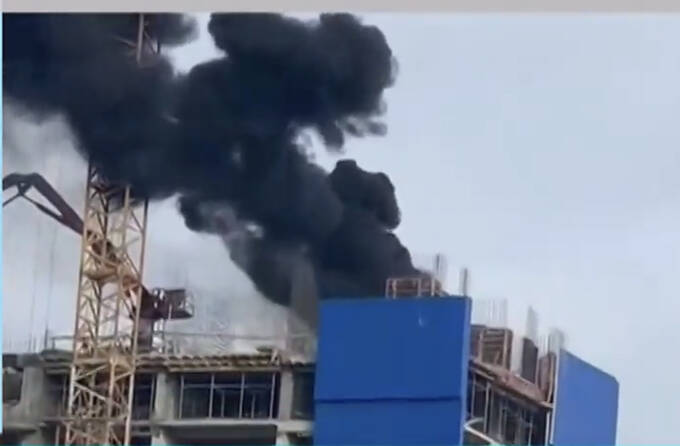 Кадры пожара на стройке ЖК «Символ», трансляция телеканала «Москва24»