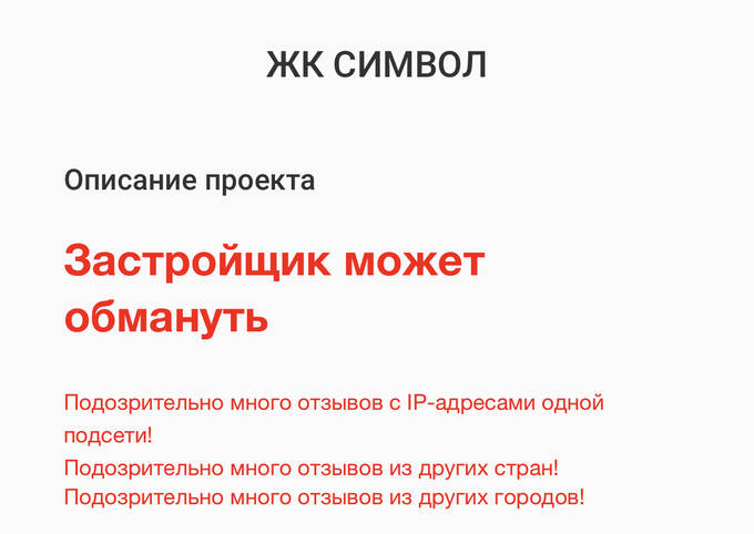 Предупреждение о фейковых отзывах о ЖК «Символ»