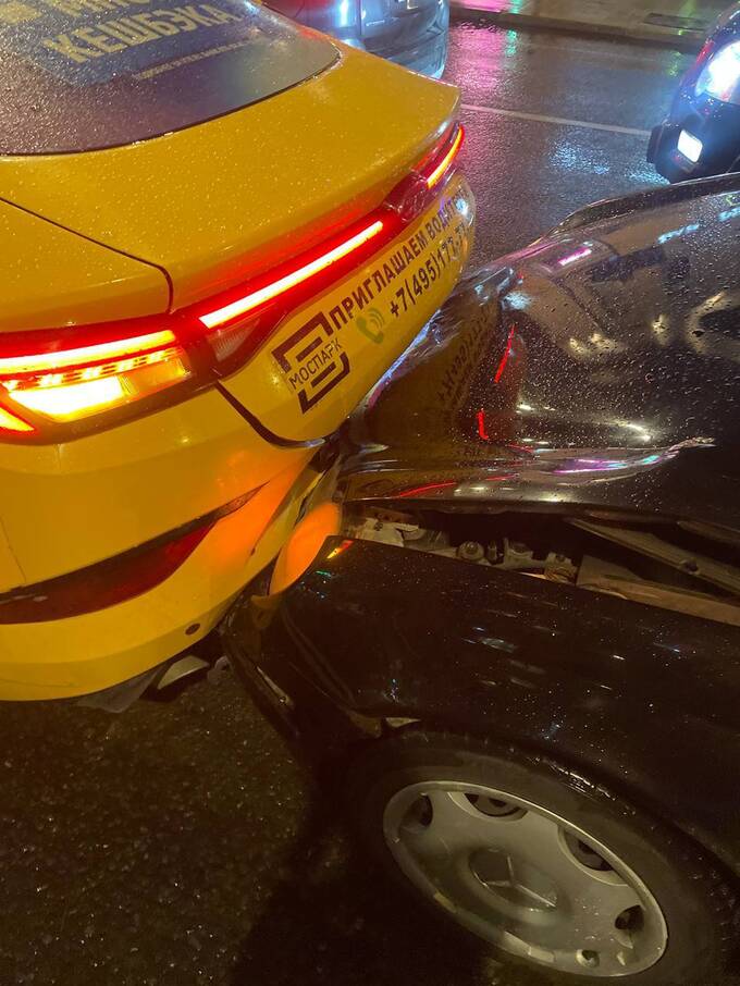 На улице Каретный Ряд произошла авария с участием трех транспортных средств, включая такси с пассажиром. Легковой автомобиль замедлил движение на светофоре при смене сигнала на красный, такси остановилось за ним. Двигавшийся позади дипломатический автомобиль с красными номерами на скорости ударил такси. В результате воздействия такси столкнулось с находившейся впереди машиной.