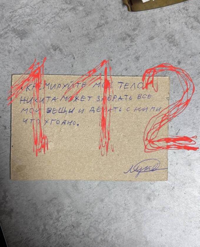 «Кремируйте мое тело. Никита может забрать все мои вещи и делать с ними что угодно.» — говорится в ней.