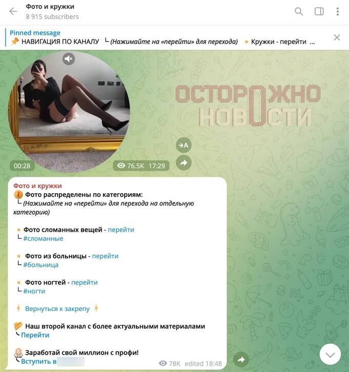 Как обнаружили «Осторожно, новости», мошенники тщательно изучают «Телеграм» и ищут каналы, где может состоять всего несколько десятков человек. Они сохраняют весь контент, включая «кружки». Позже файлы собирают в специальных каналах (базах). Там можно найти разные фото девушек: от домашних селфи до снимков из больницы или из взлетающего самолёта.