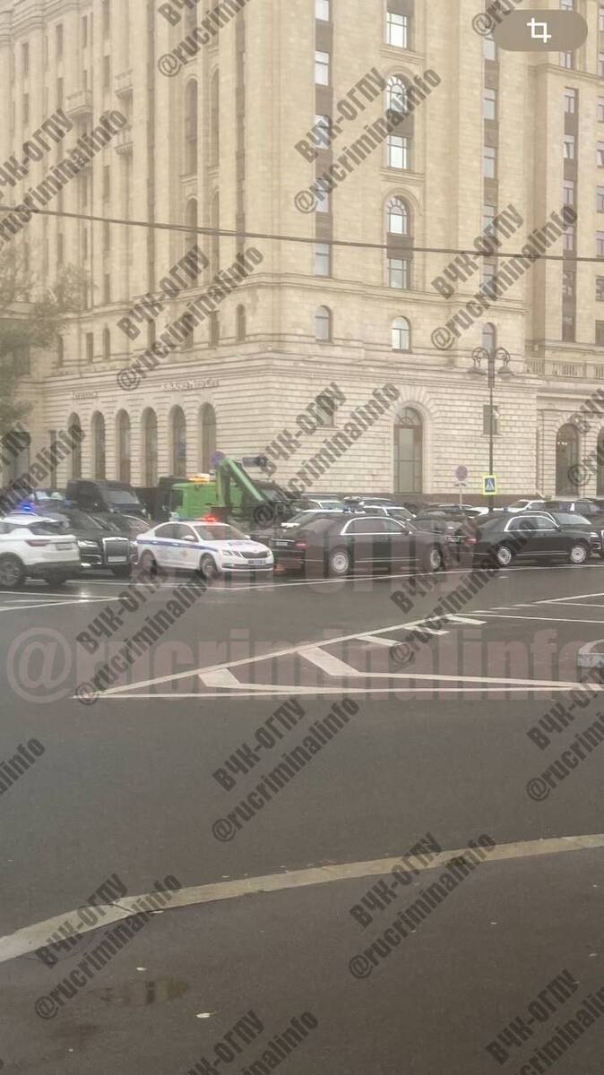 С десяток правительственных АУРСОВ (современных членовозов), несколько десятков машин охраны ФСО и полиции и прочих дорогостоящих автомобилей.