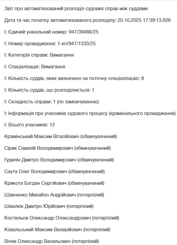 Из них следует: 20 октября 2025 было осуществлено автораспределение производства, слушать которое выпало служителю Фемиды Игорю Борщеву.