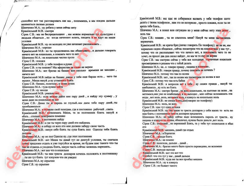 В интерпретации гособвинения, ОПГ Гриценко специализировалось на "выбивании долгов" и действовало по меньшей мере в трех регионах - в Киеве, а также на территории Сумщины и в Одессе. В общей сложности речь идет о пяти задокументированных эпизодах "победы", среди которых выделяется кейс, связанный с визитом "Крамика" и Ко в Южную Пальмиру полугодовой давности.