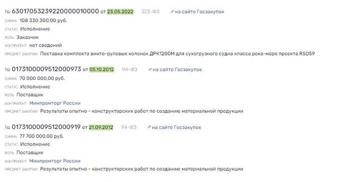 Вывод неутешительный – компании из орбиты ОСК, как минимум те, которые открывают свои финансовые данные, можно назвать "дышащими на ладан". При этом у каждой есть госконтракты, многие из которых "висят" ещё с незапамятных времён (ниже приводим несколько скриншотов с цифрами).