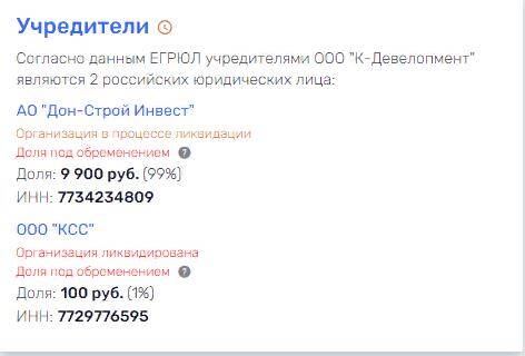 В качестве примера можно рассмотреть деятельность ООО «К-Девелопмент», ликвидированной в феврале 2021 г. Ее учредителями выступали АО «Дон-Строй Инвест» и ООО «КСС», чьи доли находились под обременением ВТБ. Первая компания находится в стадии ликвидации, вторая уже ликвидирована.
