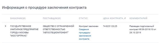 Закупка проходит, победителем становится единственный участник - ООО "АвтоСпецКомпонент" (АСК), с которым и подписывается контракт на максимальную цену. Конкурентов-то не было.