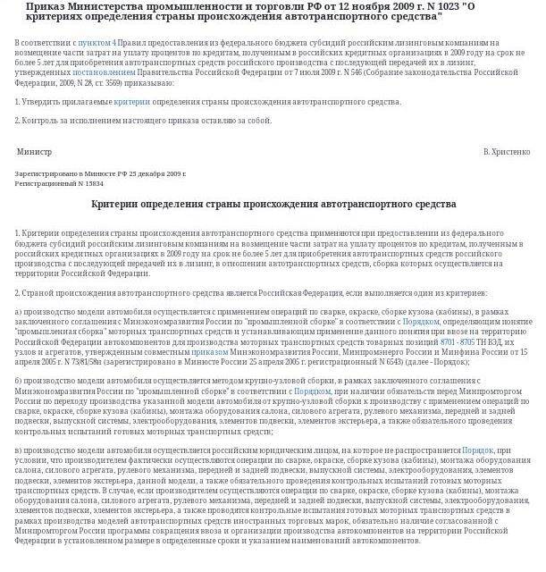 Но простите, у нас никак не сходится этот "пасьянс". Вот смотрим мы на приказ Минпромторга РФ от 12 ноября 2009 г. N 1023 "О критериях определения страны происхождения автотранспортного средства" и там вполне внятные критерии определения страны происхождения автотранспортного средства, и довес оборудования среди этих критериев не фигурирует. Есть что проверить компетентным органом, не находите?