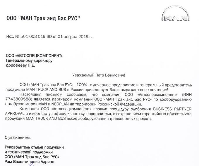 Как следует из ответа, при заключении контракта ООО "АСК" планировало переоборудовать базовые автобусы российского производства марки НЕФАЗ, однако в связи со сроками поставки указанных автобусов (от 10 до 12 месяцев) компания переоборудовала туристические автобусы марки MAN. А вот, чтобы соблюсти запрет, прописанный в тендере, эта фирма после переоборудования турецко-немецкий MAN - установки подъёмника для инвалидов-колясочников Huebner EXEO III (после испытания некой лаборатории) - получила новые VIN, то есть идентификационный номер транспортного средства. А именно в номере кузова (VIN) и шифруется страна сборки автомобиля.