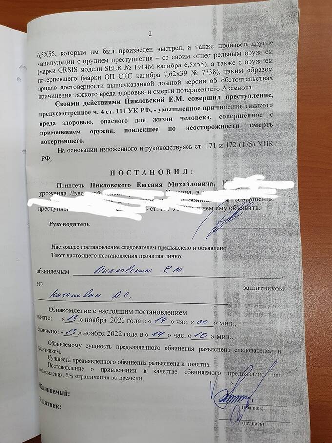 Следствие расценило произошедшее, как несчастный случай на охоте. Мол, в Аксенова случайно попал бывший полицейский Евгений Пикловский.