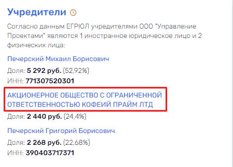 Соучредителями компаний Печерского являются офшоры - компания с ограниченной ответственностью АДГ Инвестмент Ко., Лимитед и Акционерное общество с ограниченной ответственностью Кофеий Прайм ЛТД. В них и надо искать деньги ВТБ.
