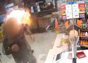 Грабитель облил работника жидкостью для зажигалок и поджег.
