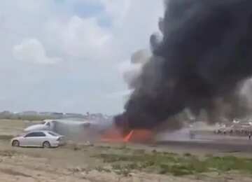 В Конго министерский самолёт выкатился с полосы и загорелся
