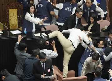 Подобные выходки в тайваньском парламенте не редкость. Там часто случаются драки, в ходе которых народные избранники переворачивают и ломают мебель и аппаратуру присутствующих на заседаниях журналистов.