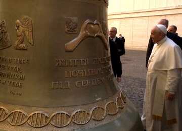 Звон колоколов на площади Святого Петра после смерти Папы римского Франциска. В память о нем также 88 раз (именно столько лет было покойному понтифику) прозвонил колокол в парижском соборе Нотр-Дам.