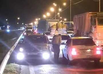 В Ингушетии легковой автомобиль врезался в грузовик, загорелся и попал на видео.
