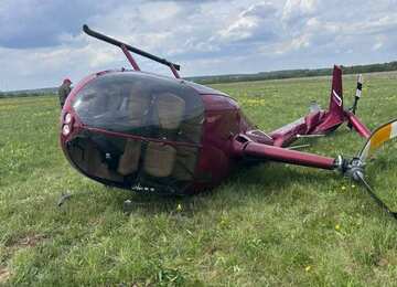 Robinson R66 совершил жёсткую посадку под Одинцово и упал на бок