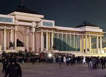 В Монголии протестующие собрались на центральной площади Улан-Батора и перекрыли проспект.