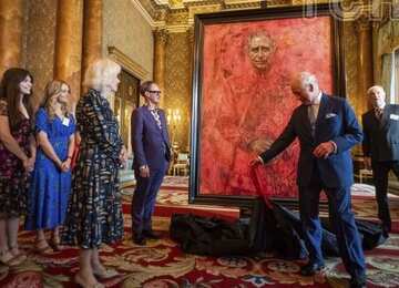Художник Джонатан Йео представил королю Чарльзу III его первый официальный портрет в синей гостиной Букингемского дворца в Лондоне.