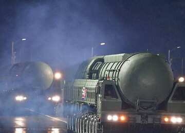 На параде в Северной Корее была продемонстрирована новая межконтинентальная баллистическая ракета "Хвасон-20", способная нести несколько ядерных боеголовок и, по утверждениям Пхеньяна, достигать расстояния до 15 тысяч километров.