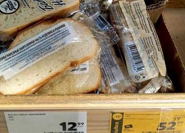 В сети «Пятёрочка» начались продажи хлеба поштучно — теперь покупателям предлагают приобрести кусок весом 40 грамм за 13 рублей.