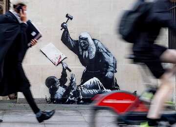 Работа Бэнкси на Королевском суде Лондона будет удалена, возможна идентификация художника и уголовное преследование